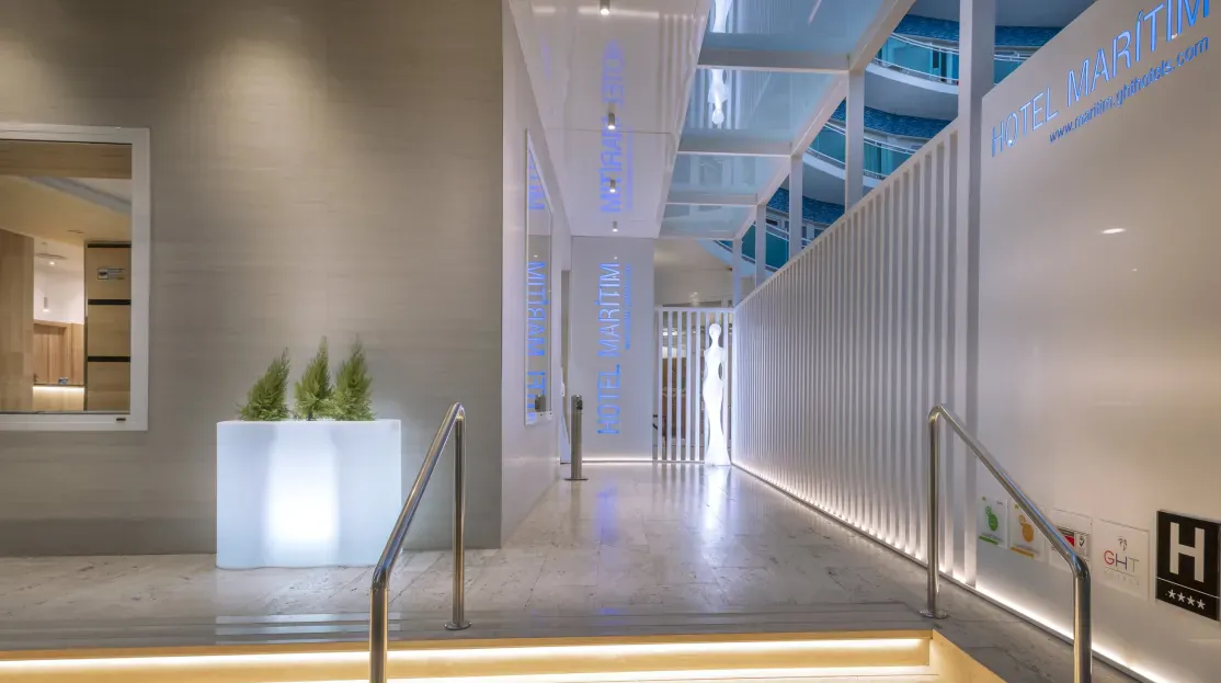 L’Hôtel GHT Marítim 3★ dispose d’une piscine extérieure avec solarium et d’un spa moderne situé au dernier étage, offrant une vue panoramique sur la mer. Le centre de bien-être comprend jacuzzi, sauna, hammam, douches sensorielles et salle de sport. Des soins et massages sont proposés sur réservation. L’établissement met à disposition une réception ouverte 24h/24, le wifi gratuit, une bagagerie, un service de blanchisserie (en supplément), des ascenseurs et un parking privé à proximité. En saison, des animations légères sont proposées pour agrémenter le séjour.