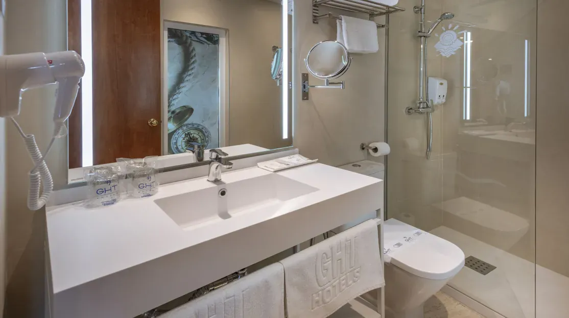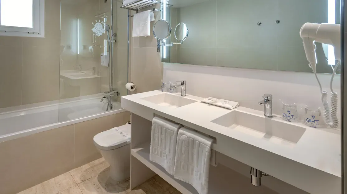 Les chambres Standard de l’Hôtel GHT Marítim 3★ sont lumineuses, confortables et décorées dans un style contemporain. Elles disposent de la climatisation, d’une télévision à écran plat avec chaînes satellite, d’un coffre-fort, d’un téléphone, d’un minibar, d’un accès wifi gratuit et d’un balcon ou d’une terrasse. La salle de bain privative comprend baignoire ou douche, sèche-cheveux et articles de toilette. Elles offrent un cadre accueillant et reposant, idéal pour les couples, les familles ou les amis en quête de confort.