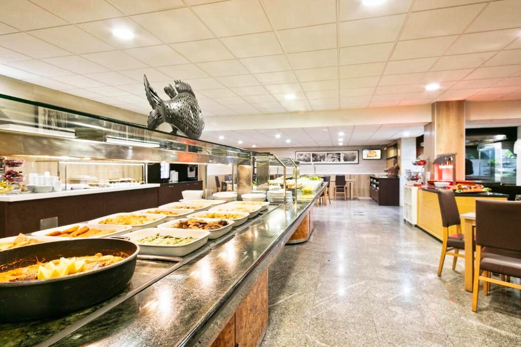 Le restaurant buffet de l’hôtel propose une cuisine méditerranéenne et internationale, avec un large choix de plats préparés à partir de produits frais. Des options végétariennes et sans gluten sont disponibles sur demande. L’établissement propose plusieurs formules : petit-déjeuner, demi-pension et pension complète. Vous pourrez également profiter du bar-salon, idéal pour un moment de détente après une journée passée en montagne ou dans la ville.