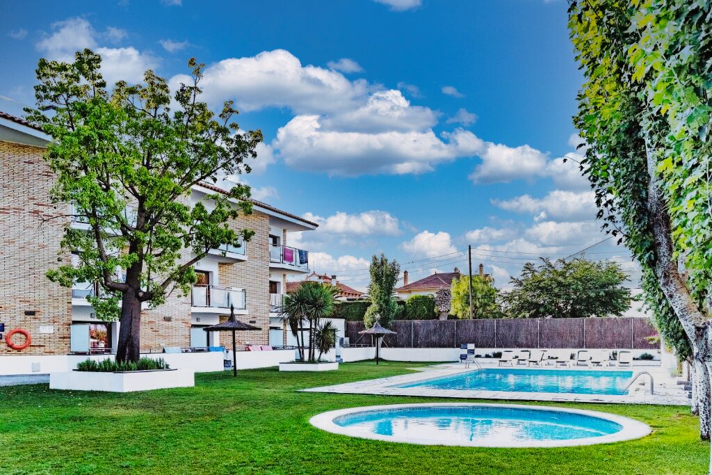 Les espaces collectifs incluent une piscine extérieure entourée de transats, parfaite pour se détendre sous le soleil espagnol. Les plus actifs apprécieront la salle de sport bien équipée, tandis que les enfants pourront s'amuser dans l'aire de jeux dédiée. Des animations sont régulièrement organisées pour divertir petits et grands.