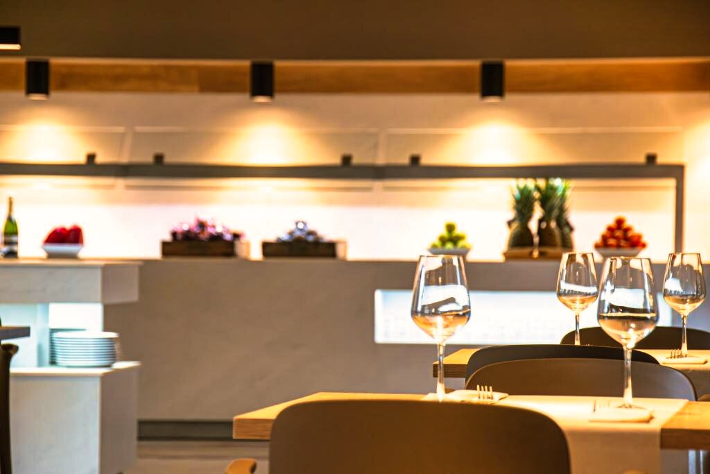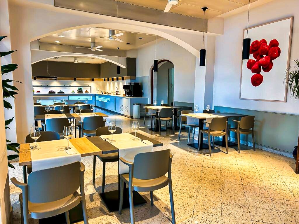 Le restaurant de l’hôtel propose une cuisine méditerranéenne et internationale, servie sous forme de buffet avec une sélection de plats variés. Des options végétariennes sont disponibles selon la saison. L’établissement propose les formules petit-déjeuner, demi-pension et pension complète. Un bar et un espace lounge complètent l’offre pour profiter de moments de détente face à la mer.