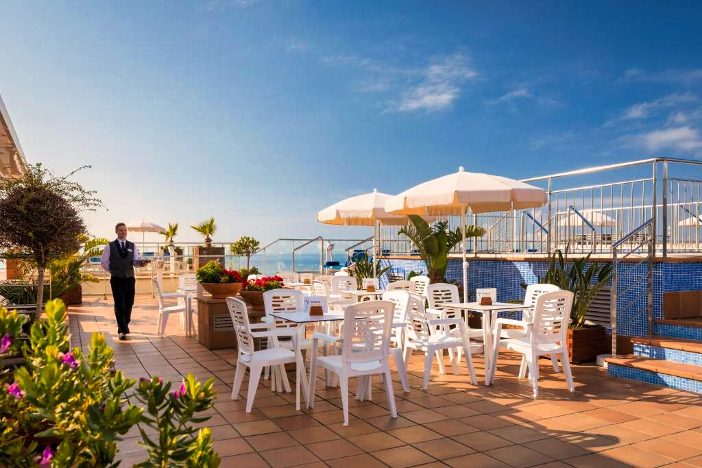 Le htop Pineda Palace 4★ dispose d’une belle piscine extérieure avec vue sur la mer, située sur le toit-terrasse de l’hôtel, entourée de transats et de parasols. Cet espace offre un panorama unique sur la Méditerranée. Les clients peuvent également profiter d’un espace détente avec sauna, bain à remous et salle de sport. Des animations sont proposées en journée et en soirée, avec des spectacles, de la musique et des activités pour tous les âges. L’établissement propose également un bar, un salon TV, une salle de jeux et un service de location de vélos. Parmi les autres services : réception ouverte 24h/24, wifi gratuit dans tout l’hôtel, bagagerie, ascenseurs et service de blanchisserie (en supplément).