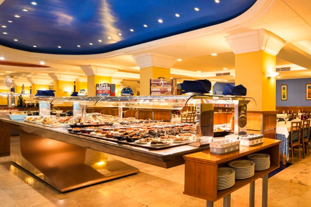 Le restaurant principal propose une cuisine internationale et méditerranéenne servie sous forme de buffet, avec un large choix de plats élaborés à partir de produits frais. L’ambiance est conviviale et adaptée aussi bien aux familles qu’aux couples. Des plats pour régimes particuliers, tels que sans gluten ou végétariens, peuvent être proposés sur demande. Selon la formule choisie, vous pourrez séjourner en demi-pension, pension complète ou tout compris.