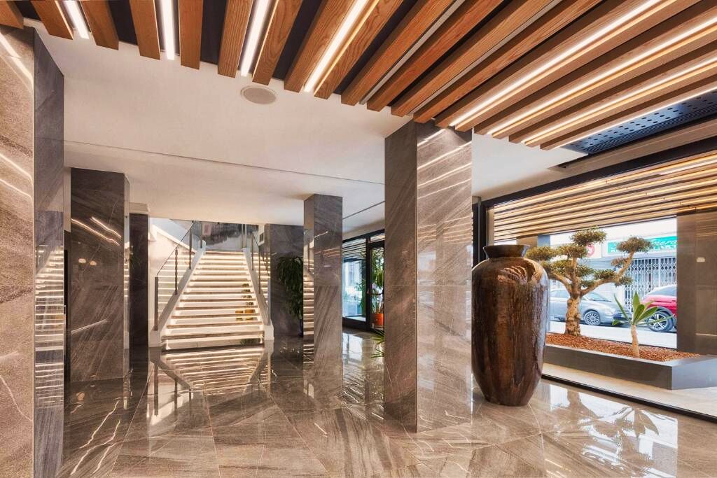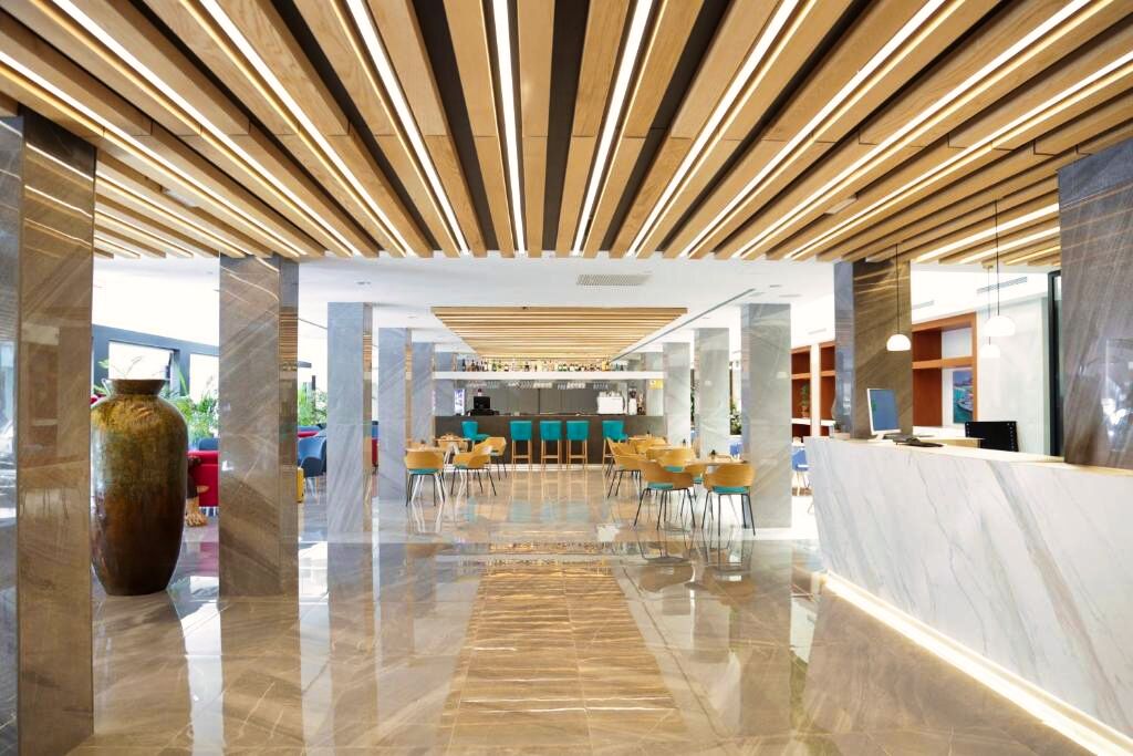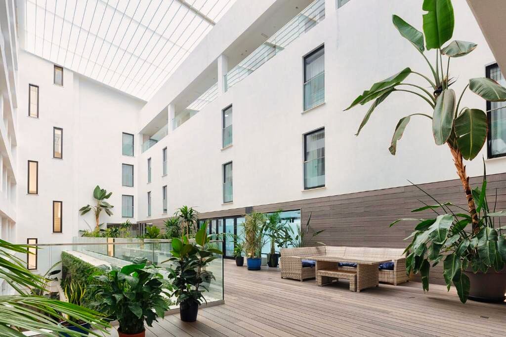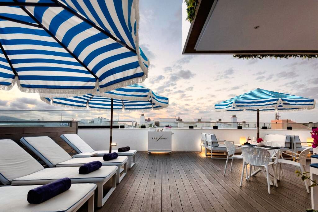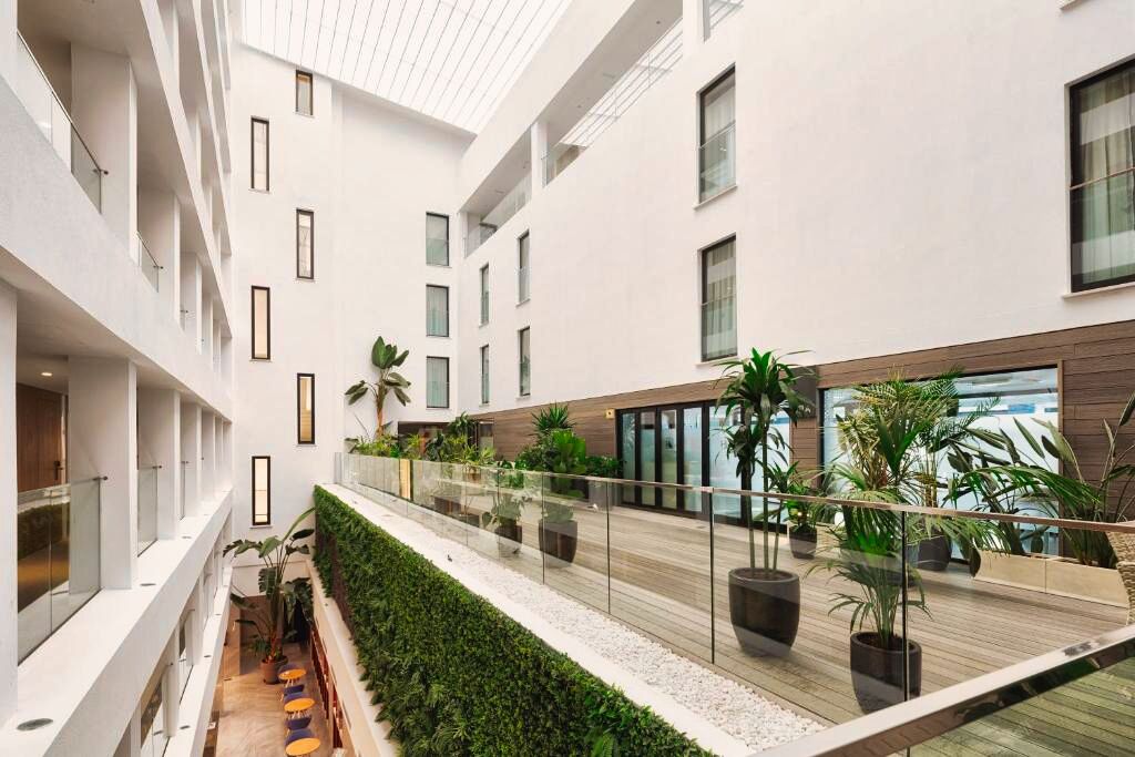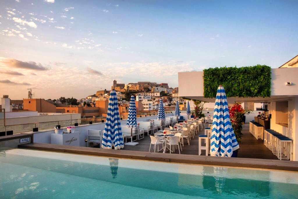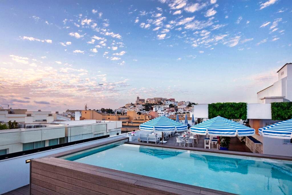 Ambiance moderne et détendue dans un hôtel urbain idéal pour les voyageurs souhaitant découvrir Ibiza Ville tout en profitant d’installations de détente comme le spa ou le rooftop panoramique.