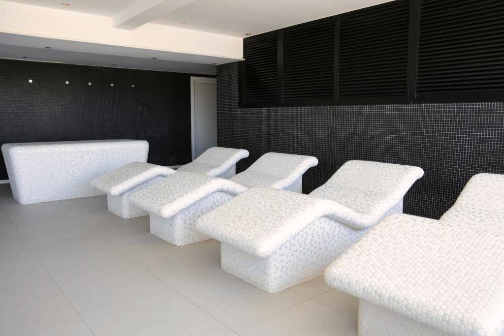 Le centre wellness dispose d’un circuit d’eau, d’un sauna et d’espaces de relaxation dédiés au bien-être.
