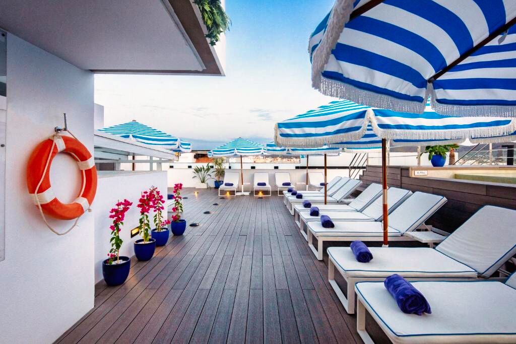 Le rooftop avec piscine et bar est l’un des espaces les plus appréciés de l’hôtel pour profiter d’une vue spectaculaire sur la ville.