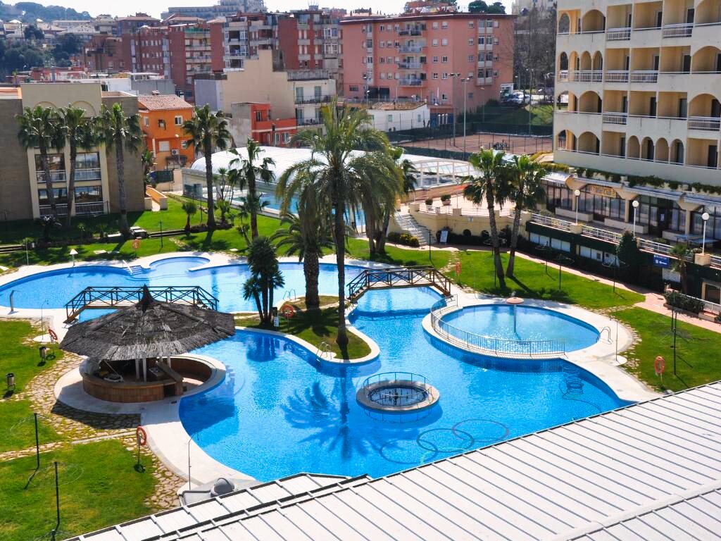 L’Hôtel Evenia Olympic Resort 4★ est situé à Lloret de Mar, sur la Costa Brava, à environ 800 mètres de la plage et du centre-ville. Implanté dans un environnement animé, il se trouve à proximité des commerces, restaurants et lieux de vie de la station. Son emplacement permet de profiter facilement de la plage tout en bénéficiant d’un accès rapide aux nombreuses activités de Lloret.