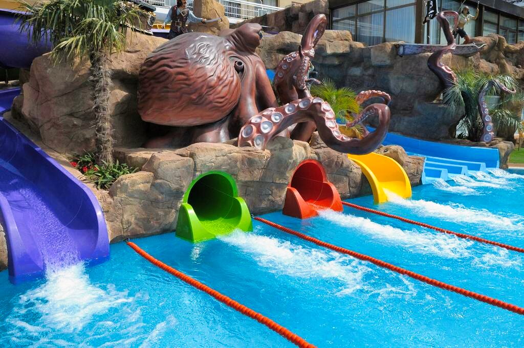 L’Hôtel Evenia Olympic Resort 4★ fait partie d’un vaste complexe et dispose de nombreuses infrastructures, dont plusieurs piscines extérieures, un parc aquatique avec toboggans, un solarium et des espaces dédiés aux enfants. Un spa avec piscine intérieure, sauna et salle de sport est également accessible. Les services incluent une réception ouverte 24h/24, le wifi gratuit dans tout l’établissement, une bagagerie, un ascenseur et un service de blanchisserie (en supplément). Des animations en journée et en soirée sont proposées dans une ambiance dynamique.