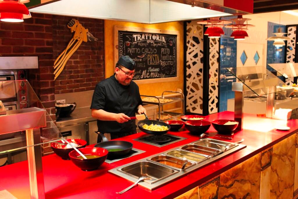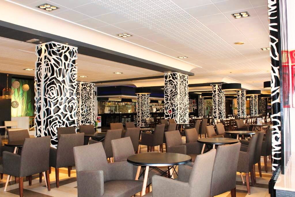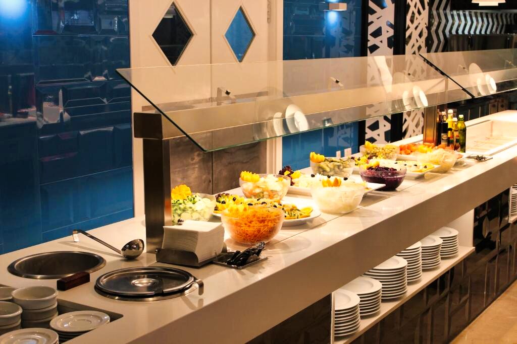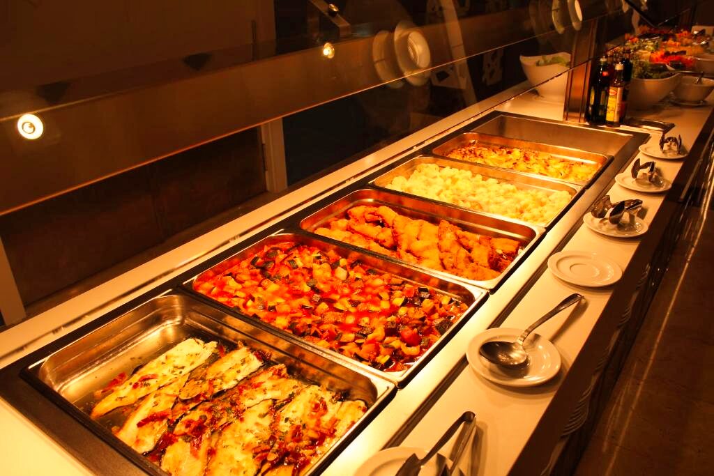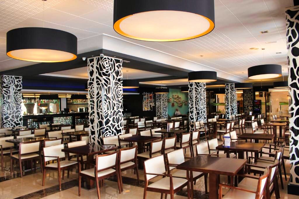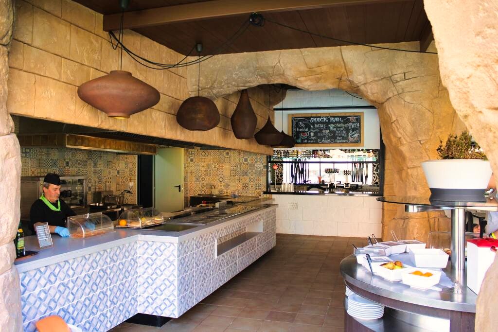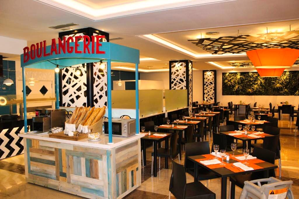 Le restaurant principal propose une cuisine méditerranéenne et internationale, servie sous forme de buffet avec show cooking et une grande variété de plats. Des options végétariennes et sans gluten sont disponibles sur demande. L’établissement propose les formules petit-déjeuner, demi-pension, pension complète et tout compris. Plusieurs bars complètent l’offre pour des moments de détente.
