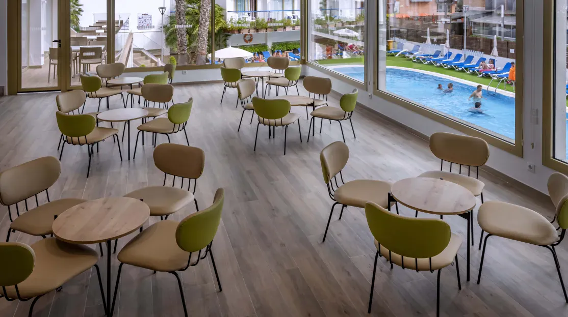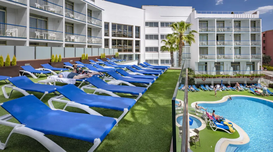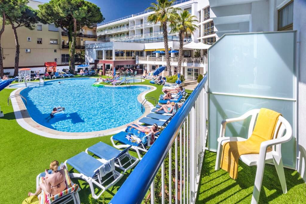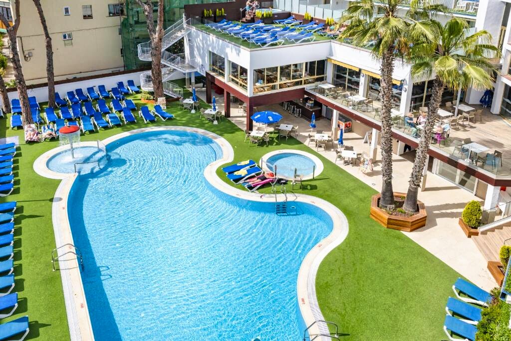 Hôtel animé près de la plage, avec piscine et spectacles, parfait pour des vacances conviviales à Santa Susanna.