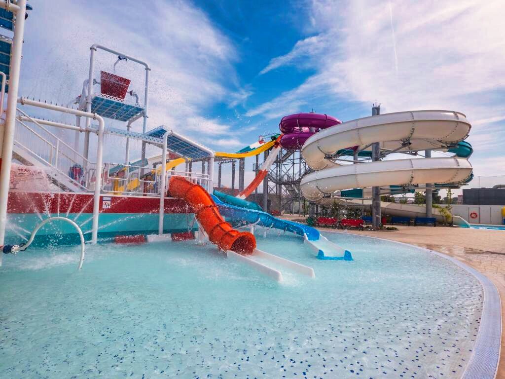 Les installations de l'hôtel incluent un parc aquatique avec plusieurs piscines et toboggans, parfait pour divertir petits et grands. Les amateurs de sport pourront profiter de la salle de fitness bien équipée, tandis que les enfants s'amuseront dans l'aire de jeux dédiée.