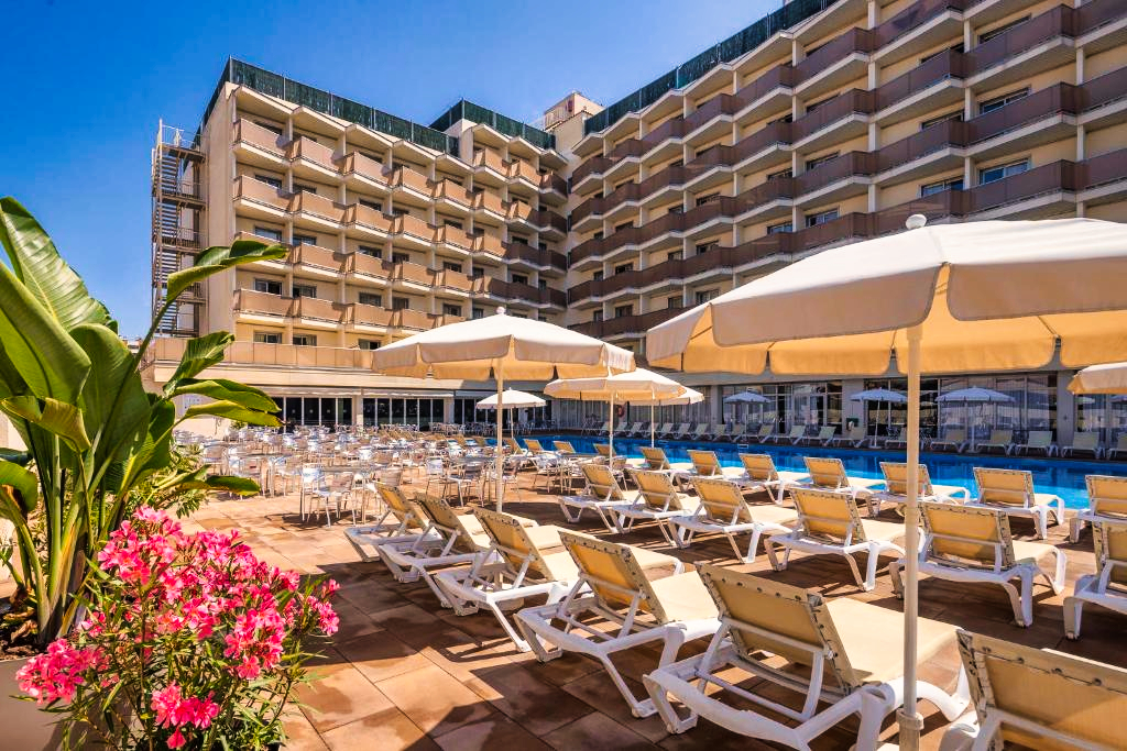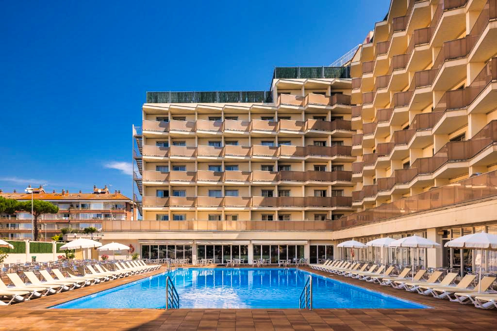 Hôtel animé avec piscines et animations, parfait pour des vacances conviviales en famille à Calella.