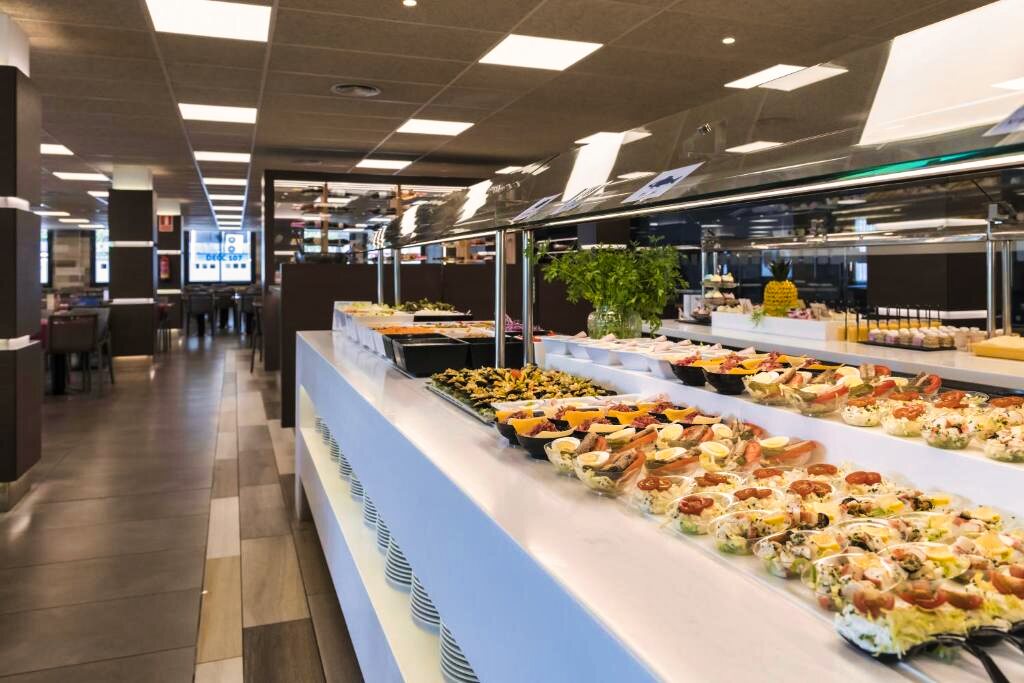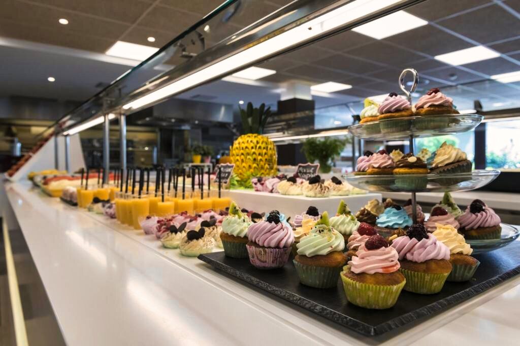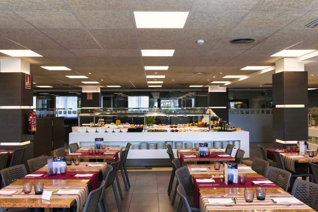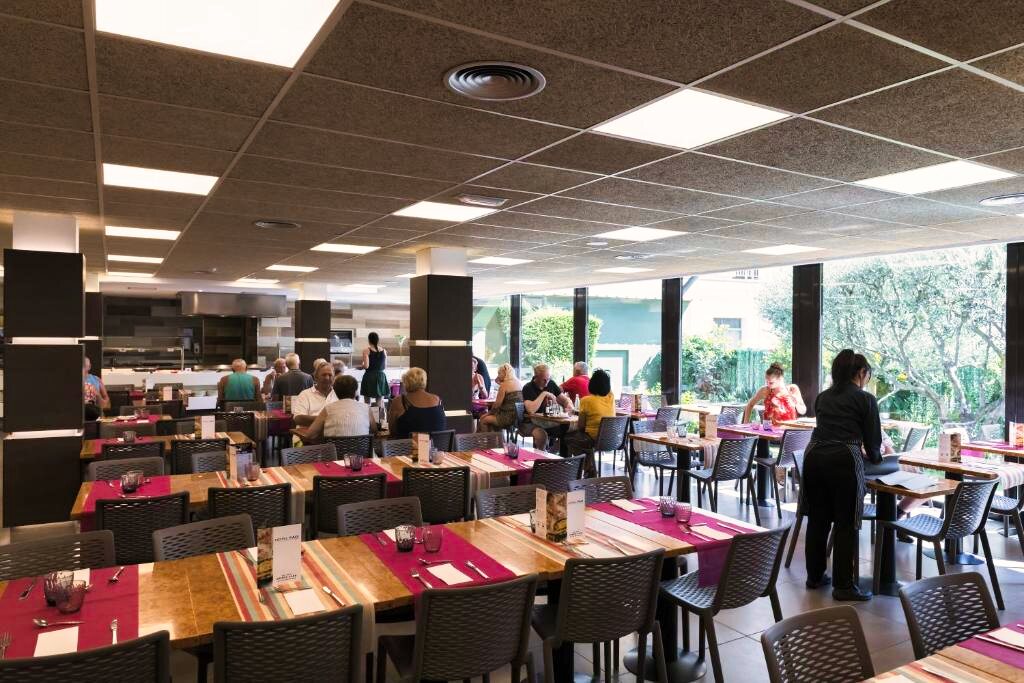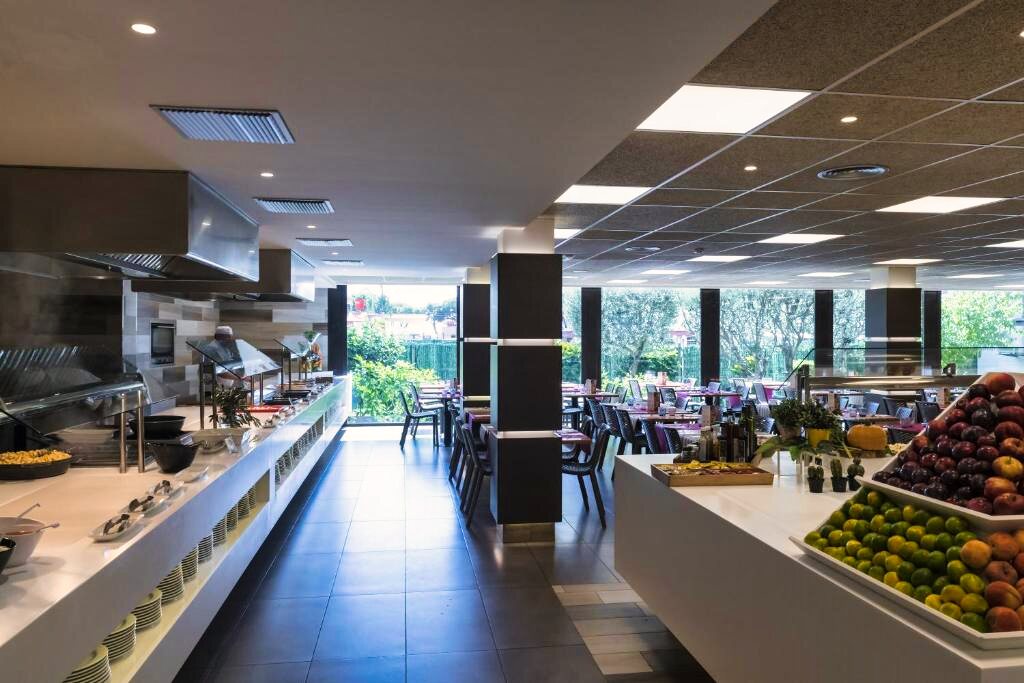 Le restaurant de l’hôtel propose une cuisine méditerranéenne et internationale, servie sous forme de buffet avec une sélection de plats variés. Des options végétariennes sont disponibles selon la saison. L’établissement propose les formules petit-déjeuner, demi-pension, pension complète et tout compris. Un bar complète l’offre pour des moments de détente.