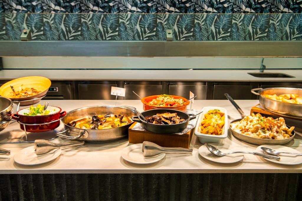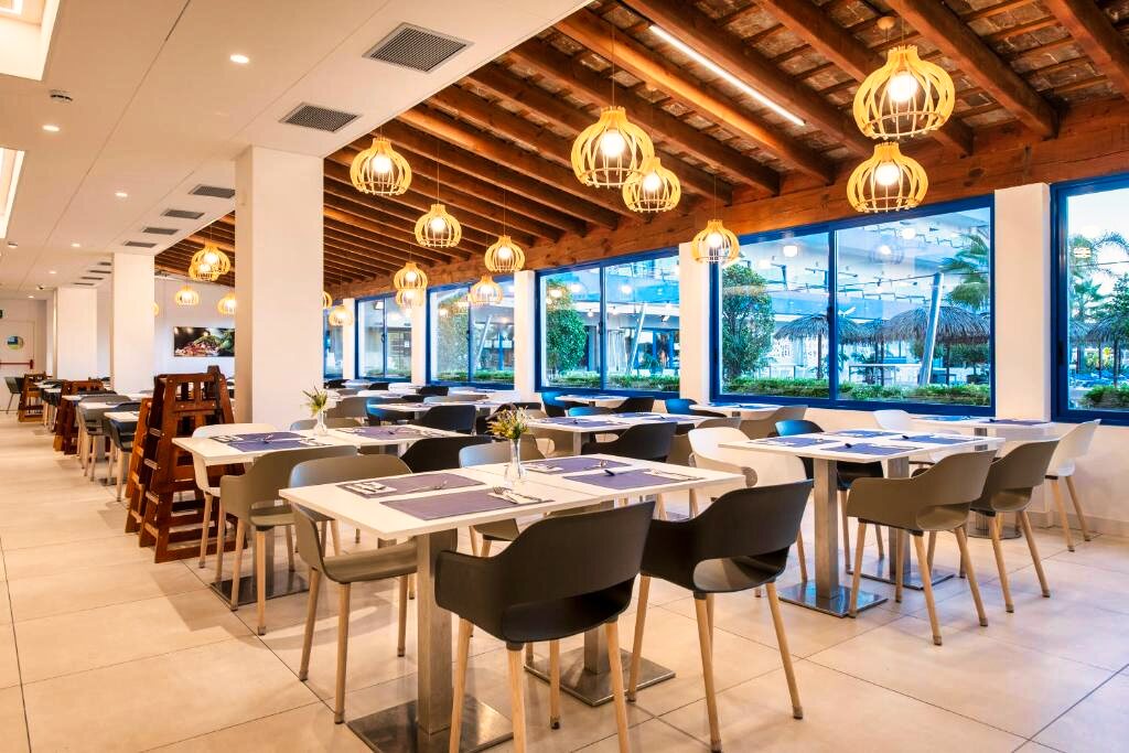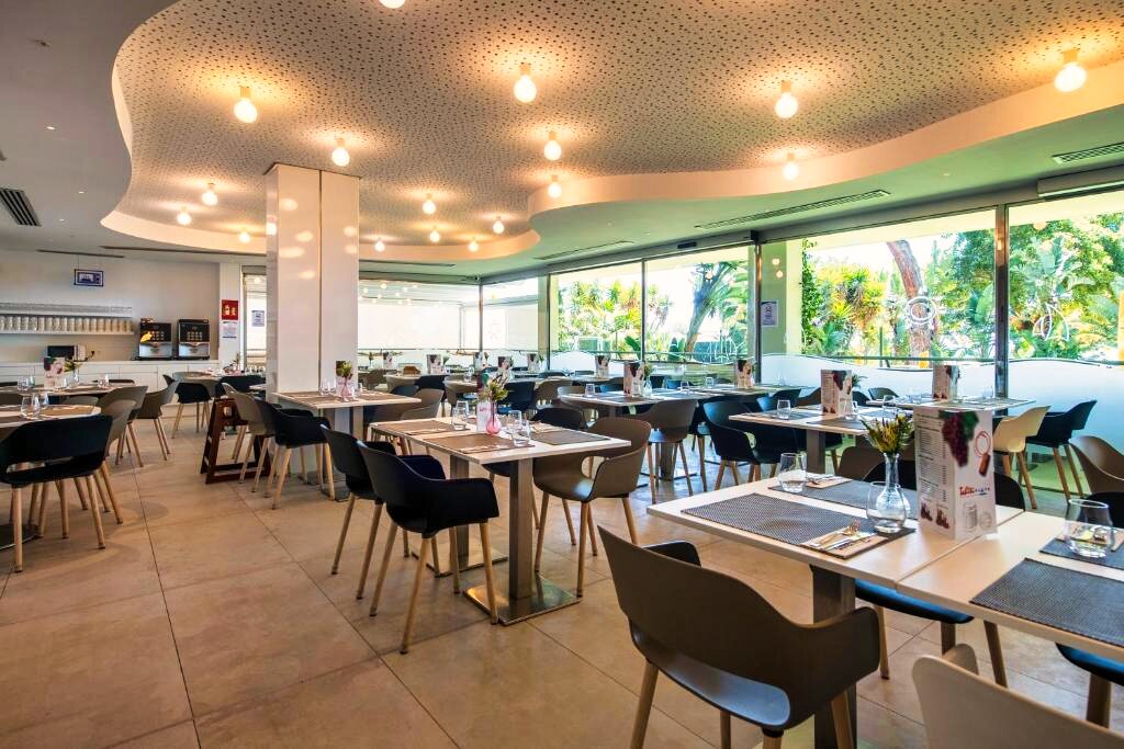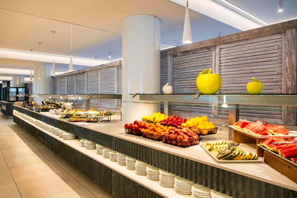 Le restaurant principal propose une cuisine méditerranéenne et internationale, servie sous forme de buffet avec show cooking et une large variété de plats. Des options végétariennes et sans gluten sont disponibles sur demande. L’établissement propose les formules petit-déjeuner, demi-pension, pension complète et tout compris. Plusieurs bars, dont un bar en bord de piscine, complètent l’offre pour des moments de détente.