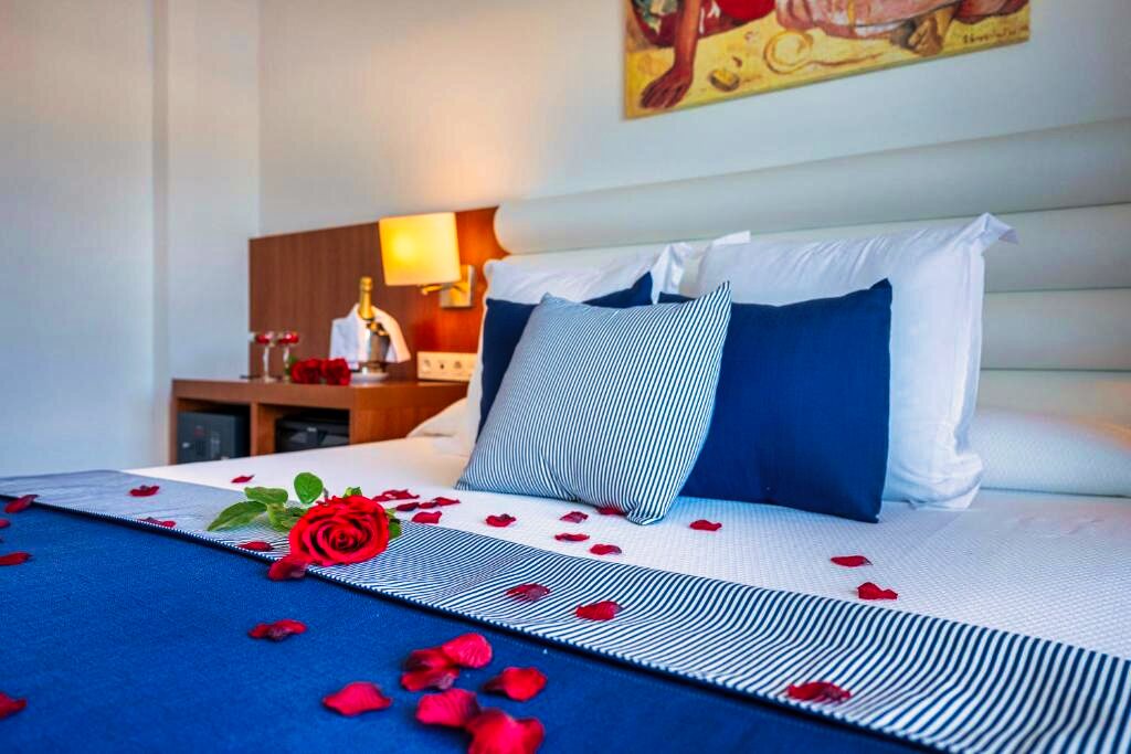 Les chambres Standard sont spacieuses, lumineuses et décorées dans un style moderne et fonctionnel. Elles disposent de la climatisation, d’une télévision à écran plat avec chaînes satellite, d’un coffre-fort, d’un téléphone, du wifi gratuit ainsi que d’un balcon ou d’une terrasse, certaines avec vue sur la mer ou la piscine. La salle de bain privative comprend une baignoire ou une douche, un sèche-cheveux et des articles de toilette. Elles offrent un cadre confortable pour un séjour balnéaire.