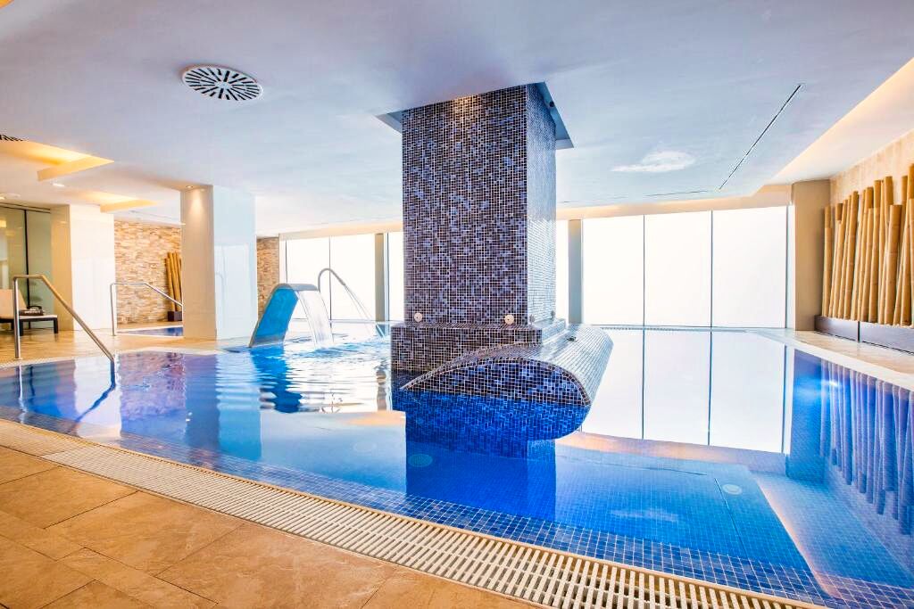 • Piscines extérieures avec solarium et chaises longues
