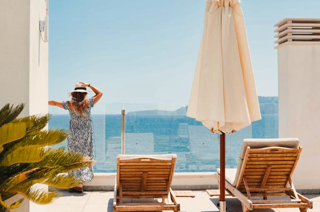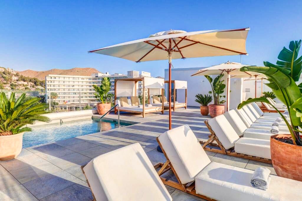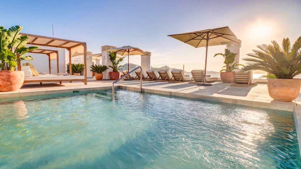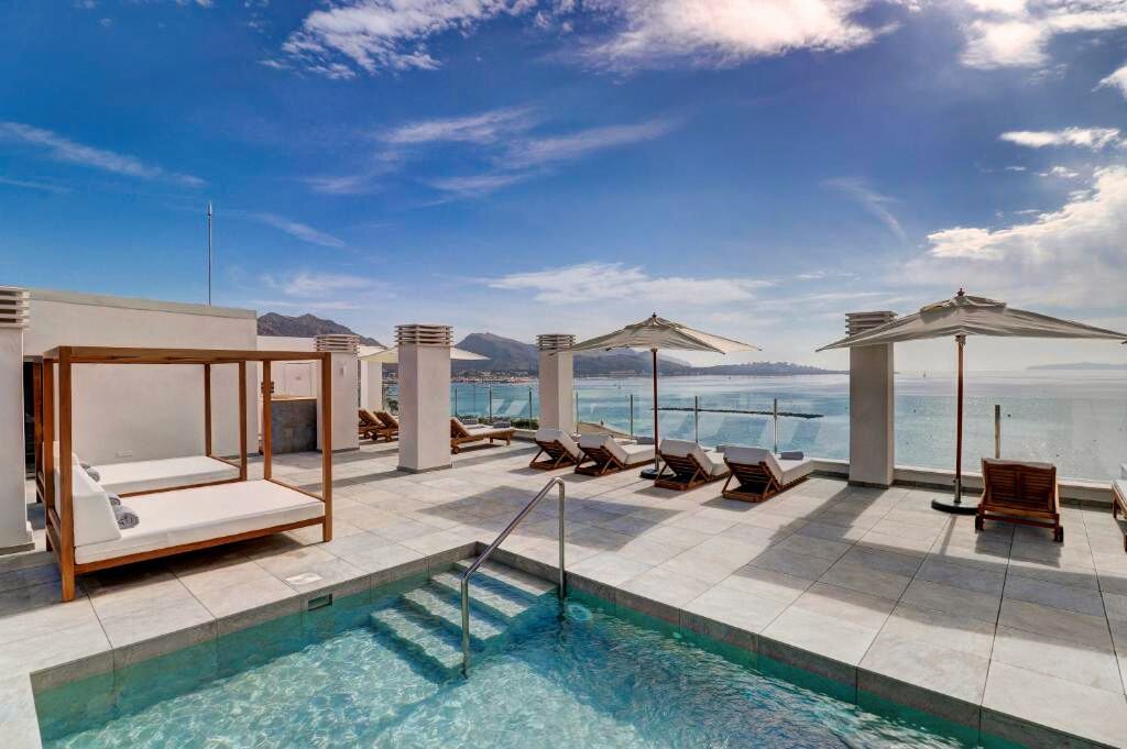 Les espaces détente et la piscine rooftop offrent une vue spectaculaire sur la baie de Pollensa.