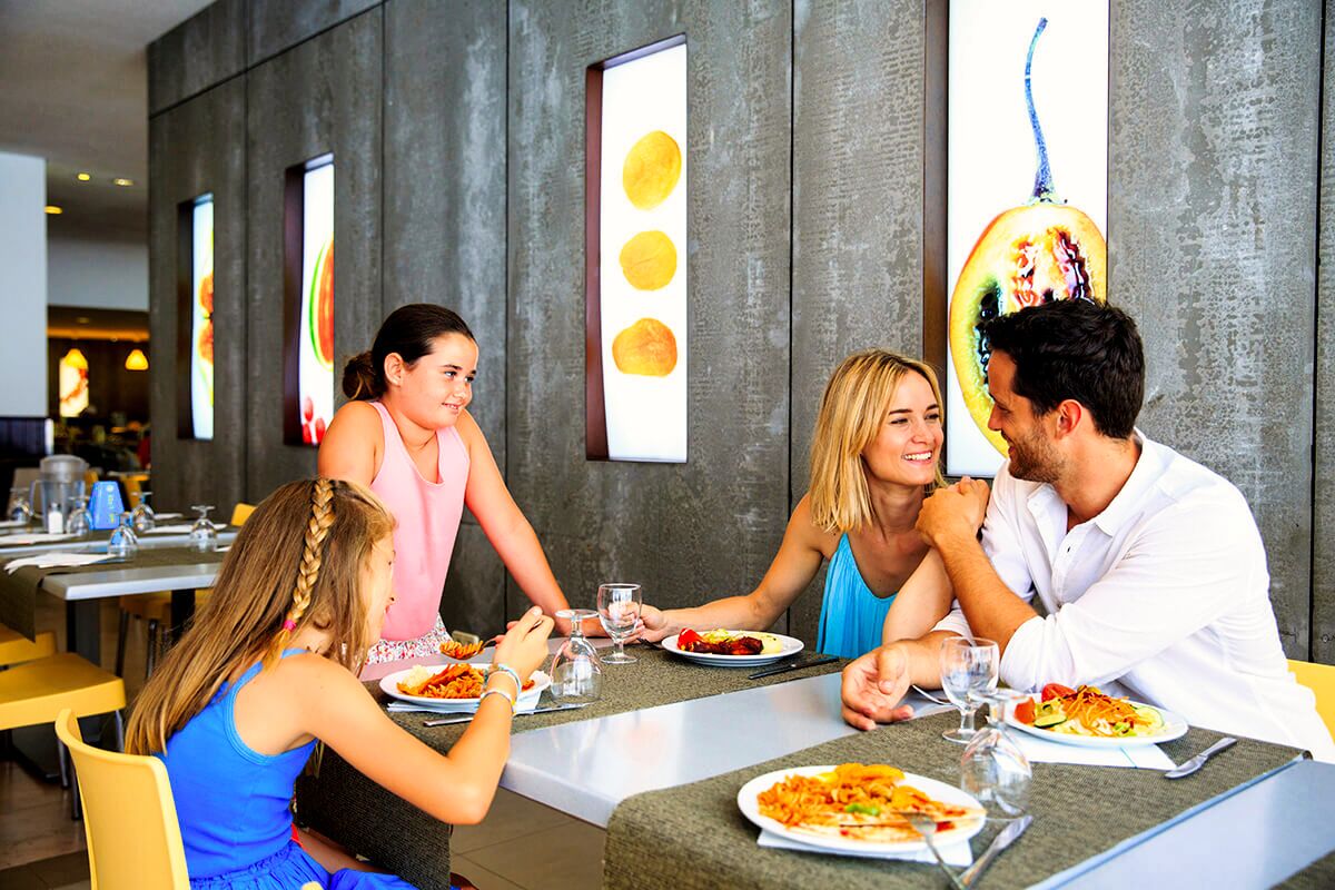 La restauration propose une offre variée adaptée aux familles et aux séjours en formule choisie.