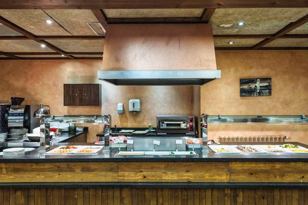 L’établissement propose un restaurant buffet avec show-cooking, alliant cuisine internationale et spécialités andorranes. Le petit-déjeuner est servi chaque matin, et le dîner est proposé dans le cadre de la demi-pension. Les formules disponibles sont : logement seul, petit-déjeuner ou demi-pension. Des options végétariennes ou sans gluten peuvent être proposées sur demande.