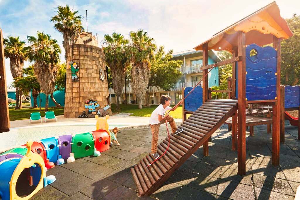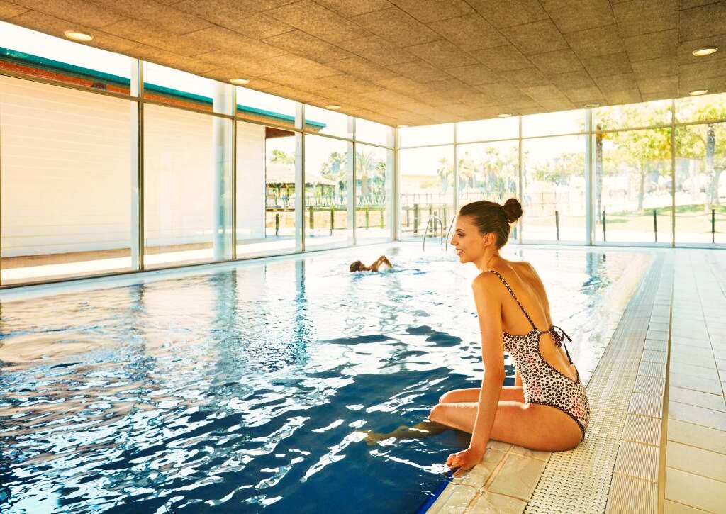 Les installations de loisirs comprennent une piscine extérieure entourée de palmiers, idéale pour se rafraîchir sous le soleil espagnol. Les plus jeunes pourront profiter de l'aire de jeux dédiée, tandis que les adultes apprécieront le centre de remise en forme bien équipé.