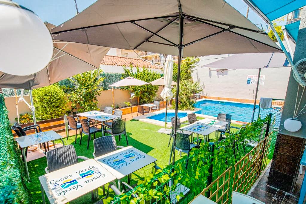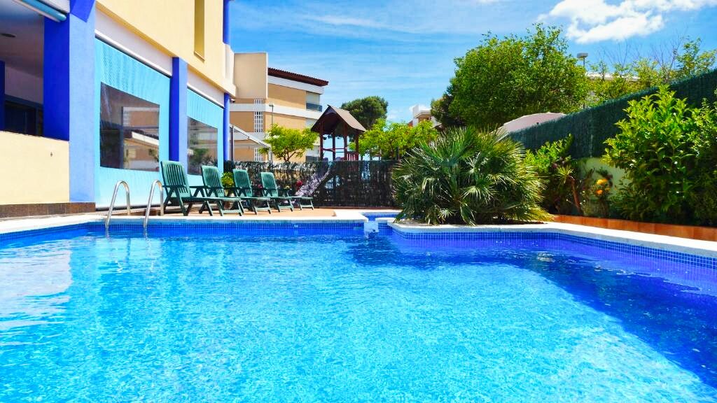 Les espaces communs incluent une piscine extérieure entourée de transats, parfaite pour se relaxer sous le soleil espagnol. Les plus actifs apprécieront la proximité de nombreuses activités nautiques et de loisirs disponibles dans la région.