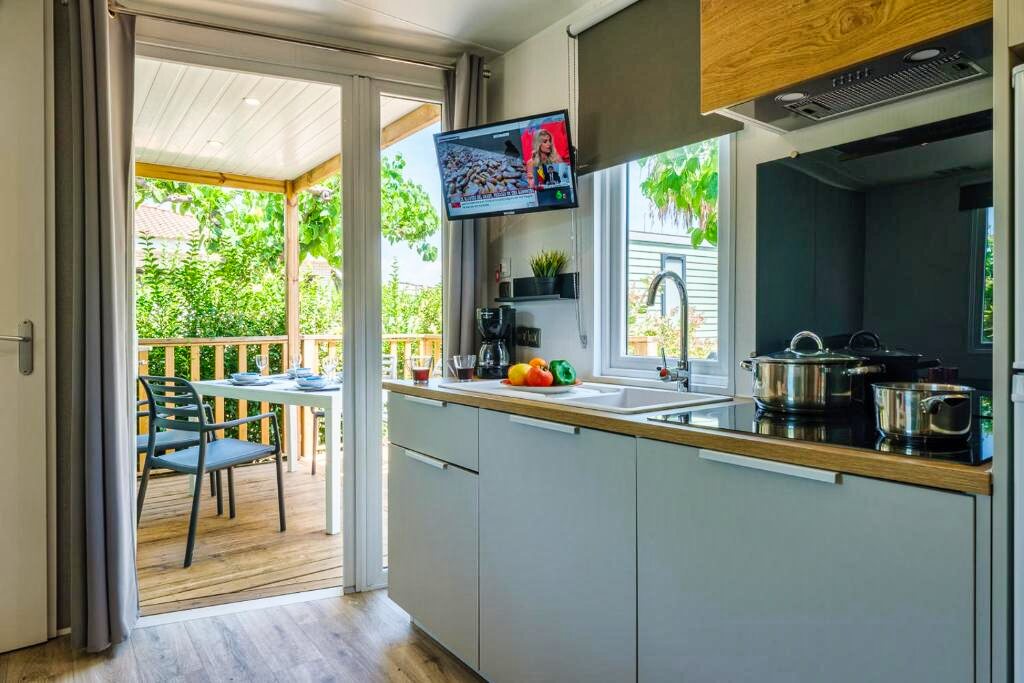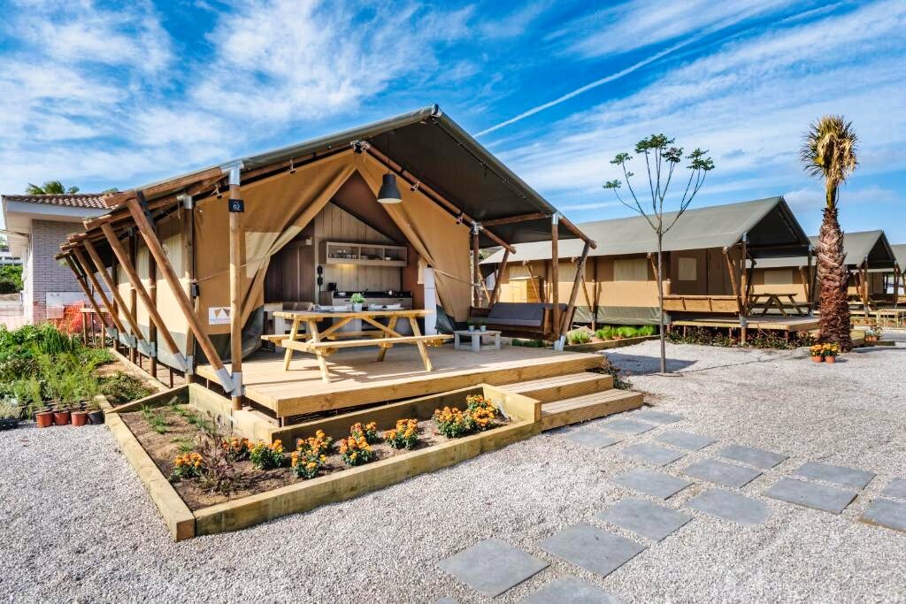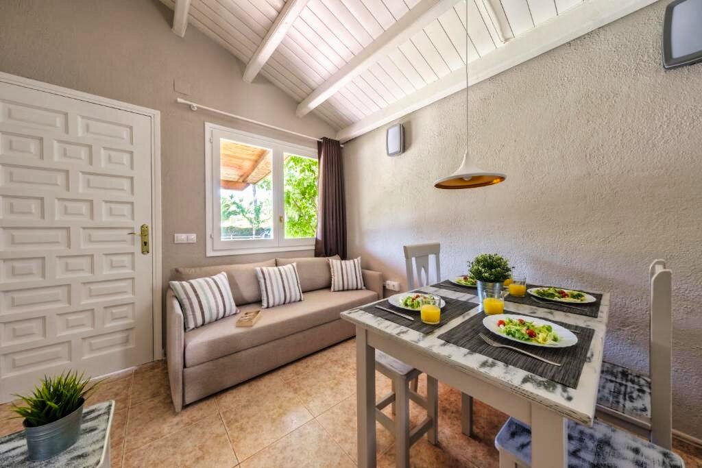 Le Camping Estival Vendrell Platja 4★ propose différents types d’hébergements, dont des bungalows et mobil-homes Standard modernes et bien équipés, conçus pour un séjour confortable en famille. Chaque logement dispose de la climatisation, d’une télévision, d’un coin salon, d’une kitchenette équipée avec micro-ondes et réfrigérateur, ainsi que d’une terrasse meublée idéale pour profiter du climat méditerranéen. Les salles de bain comprennent une douche, un sèche-cheveux et des articles de toilette.