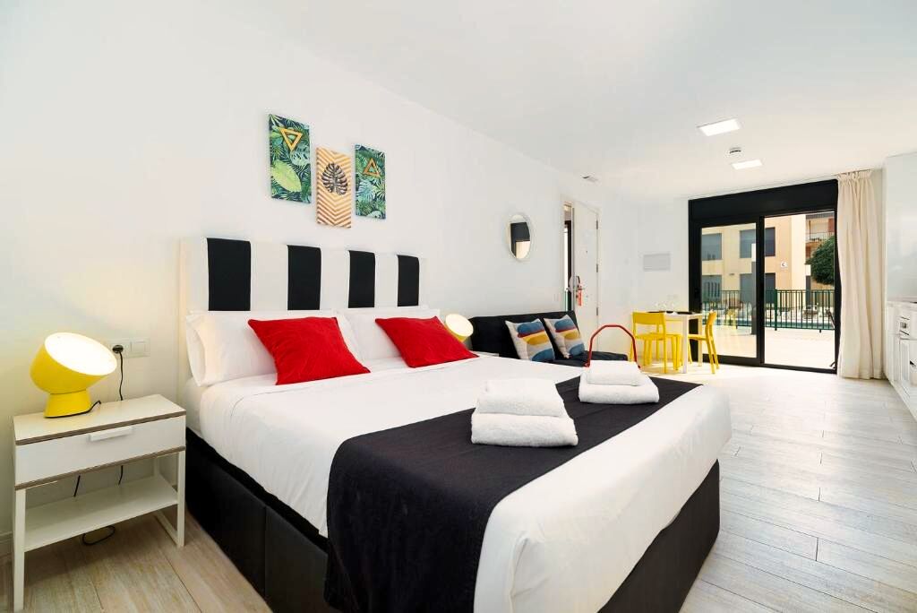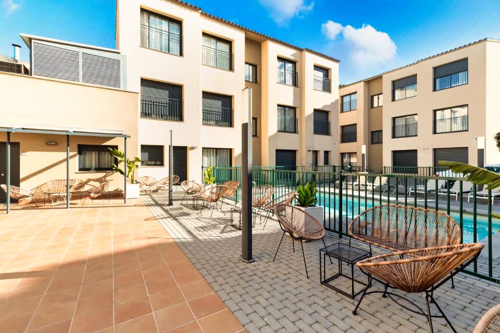 L’aéroport de Barcelone – El Prat se situe à courte distance en voiture ou en transport. Castelldefels est bien desservie par train et par les axes routiers principaux, permettant de rejoindre facilement Barcelone et d’autres villes côtières. L’accès en voiture est simple, avec des possibilités de stationnement à proximité de la résidence.