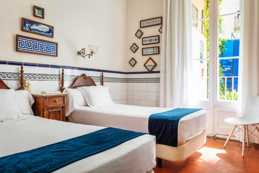 Les espaces communs de l'hôtel incluent un charmant jardin intérieur, idéal pour se détendre après une journée de découverte. Bien que l'hôtel ne dispose pas de piscine, la plage de Sitges est à quelques minutes à pied, offrant une multitude d'activités nautiques et de loisirs.