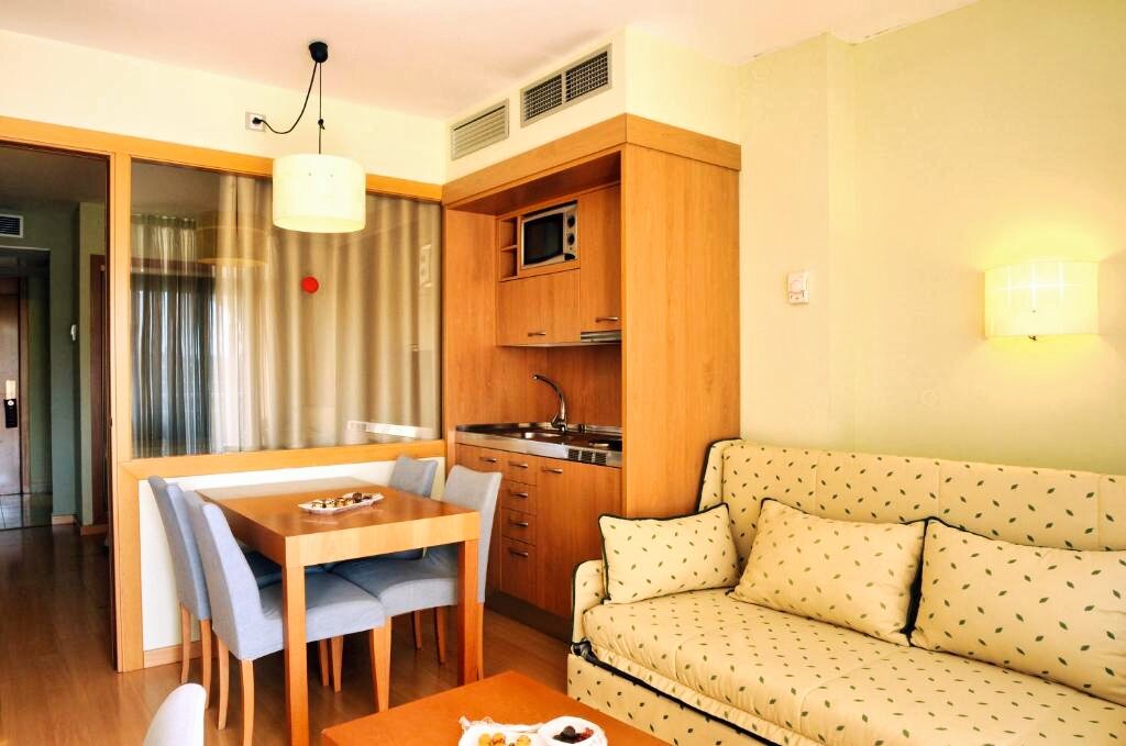L’Hôtel Evenia Olympic Suites 4★ donne accès à un vaste complexe avec plusieurs piscines extérieures, un espace aquatique avec toboggans, un solarium ainsi que des installations sportives et de bien-être incluant salle de sport et spa. Les services incluent une réception ouverte 24h/24, le wifi gratuit, une bagagerie, un ascenseur et un service de blanchisserie (en supplément). Des animations sont proposées en journée et en soirée.