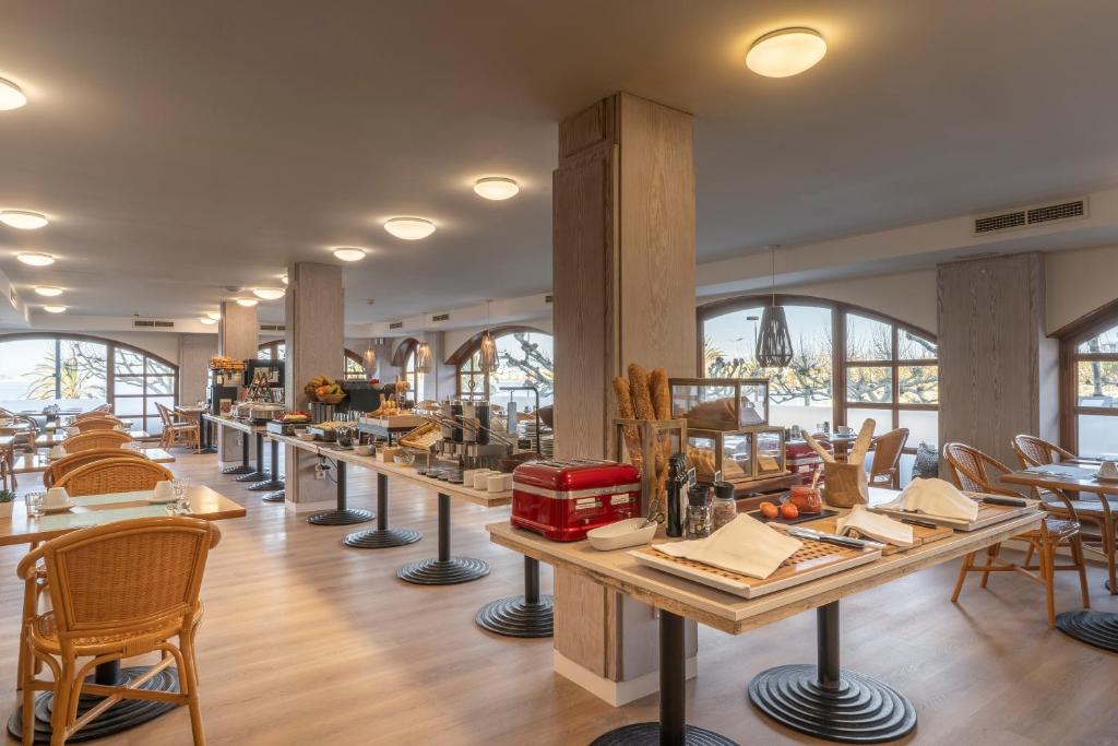 Le restaurant de l’hôtel propose une cuisine méditerranéenne et internationale, servie sous forme de buffet avec une sélection de plats variés. Des options végétariennes sont disponibles selon la saison. L’établissement propose les formules petit-déjeuner, demi-pension et pension complète. Un bar et un espace lounge complètent l’offre pour profiter de moments de détente.