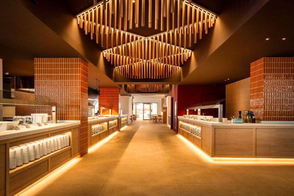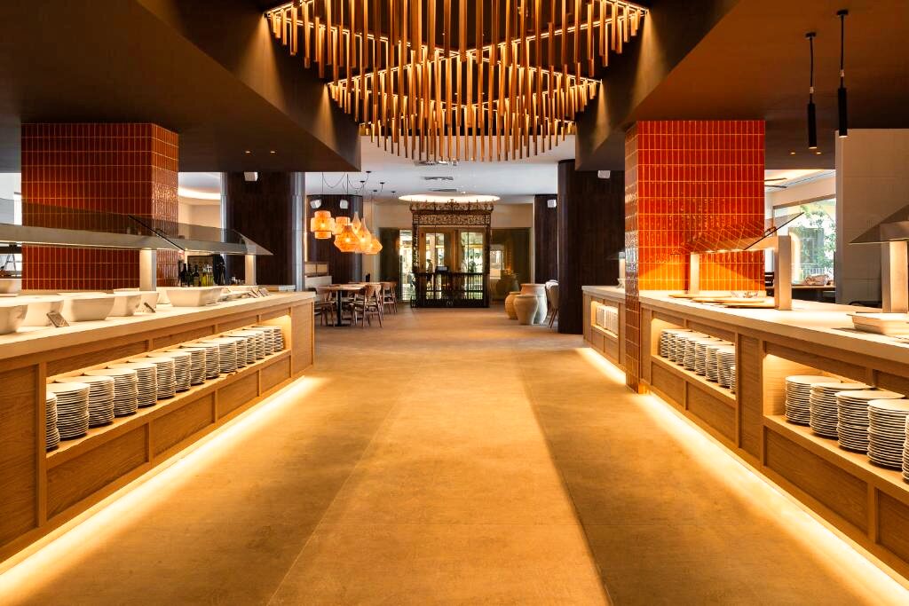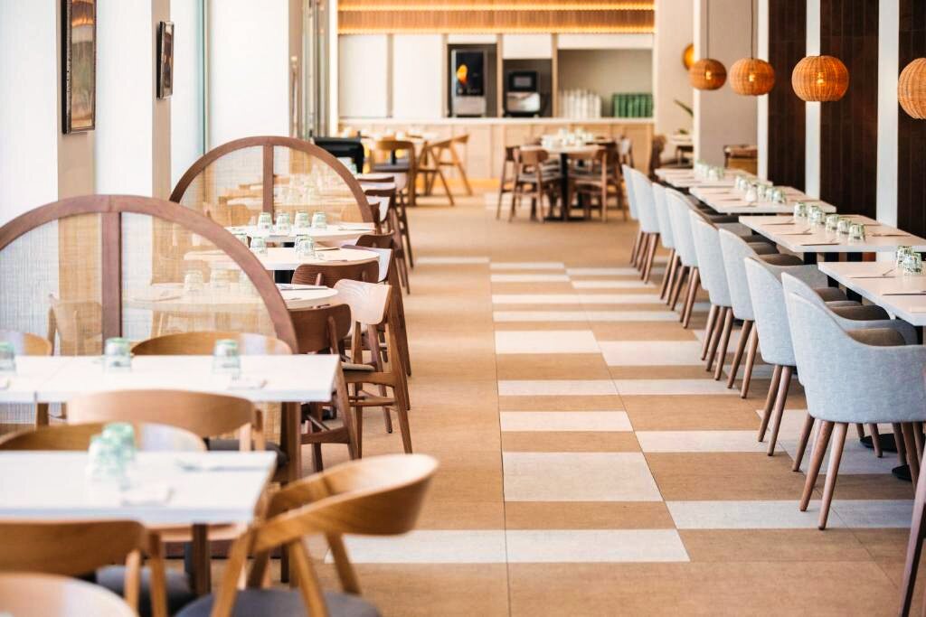 Le restaurant principal propose une cuisine méditerranéenne et internationale, servie sous forme de buffet avec une sélection de plats variés. Des options végétariennes sont disponibles selon la saison. L’établissement propose les formules petit-déjeuner, demi-pension, pension complète et tout compris. Plusieurs bars complètent l’offre pour profiter de moments de détente.