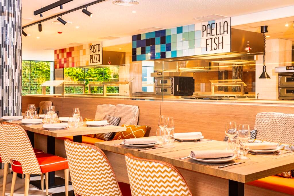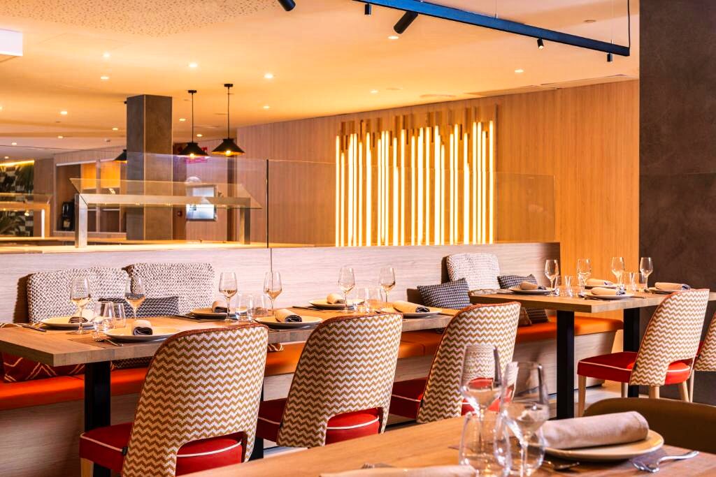 Le restaurant principal propose une cuisine méditerranéenne et internationale, servie sous forme de buffet avec show cooking et une sélection variée de plats. Des options végétariennes et sans gluten sont disponibles sur demande. L’établissement propose les formules petit-déjeuner, demi-pension et pension complète. Plusieurs bars complètent l’offre, dont un rooftop pour profiter d’un moment de détente.