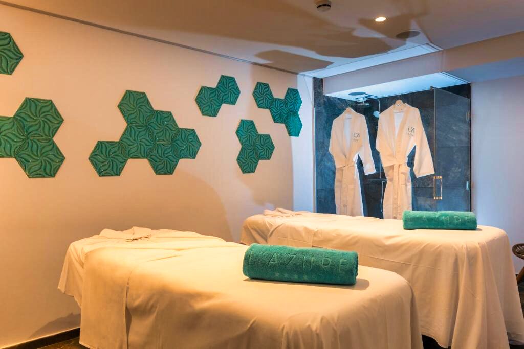 L’Hôtel L’Azure 4★ dispose de plusieurs piscines extérieures, dont une piscine sur le toit avec solarium, ainsi que d’un espace bien-être comprenant piscine intérieure, spa et salle de sport. Des espaces dédiés aux loisirs et aux activités sont également disponibles. Les services incluent une réception ouverte 24h/24, le wifi gratuit, une bagagerie, un ascenseur et un service de blanchisserie (en supplément). Des animations sont proposées en saison.